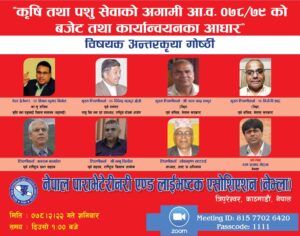 काठमाडौं । – कृषि तथा पशुपन्छी क्षेत्रका विज्ञ तथा सरोकारवालाहरूले आगामी आर्थिक वर्ष ०७८/७९ को बजेटमा कृषि तथा पशुपन्छी क्षेत्रलाई न्यून बजेट विनियोजन गरिएको आरोप लगाएका छन् । देशको कुल ग्राह्यस्थ उत्पादनमा झण्डै २७ प्रतिशत योगदान दिए पनि बजेटमा तिन प्रतिशत भन्दा कम बजेट विनियोजन हुनु दुखद भएको उनीहरुको भनाई छ । नेपाल पाराभेटेरीनरी एण्ड लाईभष्टक एसोशिएशनले आयोजना गरेको कृषि तथा पशु सेवा क्षेत्रको अगामी आ.व. ०७८/०७९ को बजेट तथा कार्यान्वयनका आधार विषेयक भर्चुयल बैठकमा सहभागी सरोकारवालाहरुले कृषि क्षेत्र सरकारको प्राथमिकतामा नपरेको प्रति गुनासो गरेका छन ।